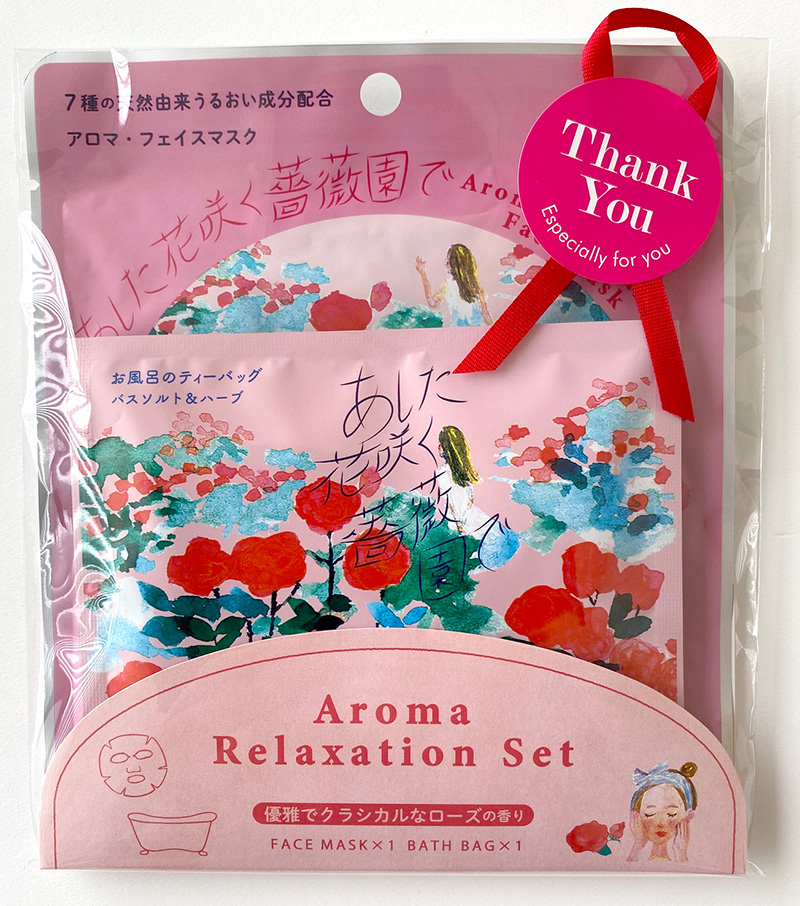 いつも大好評なこの企画!今回は、アロマの香りのフェイスマスクとバスソルトバッグの2点が入ったセットです。