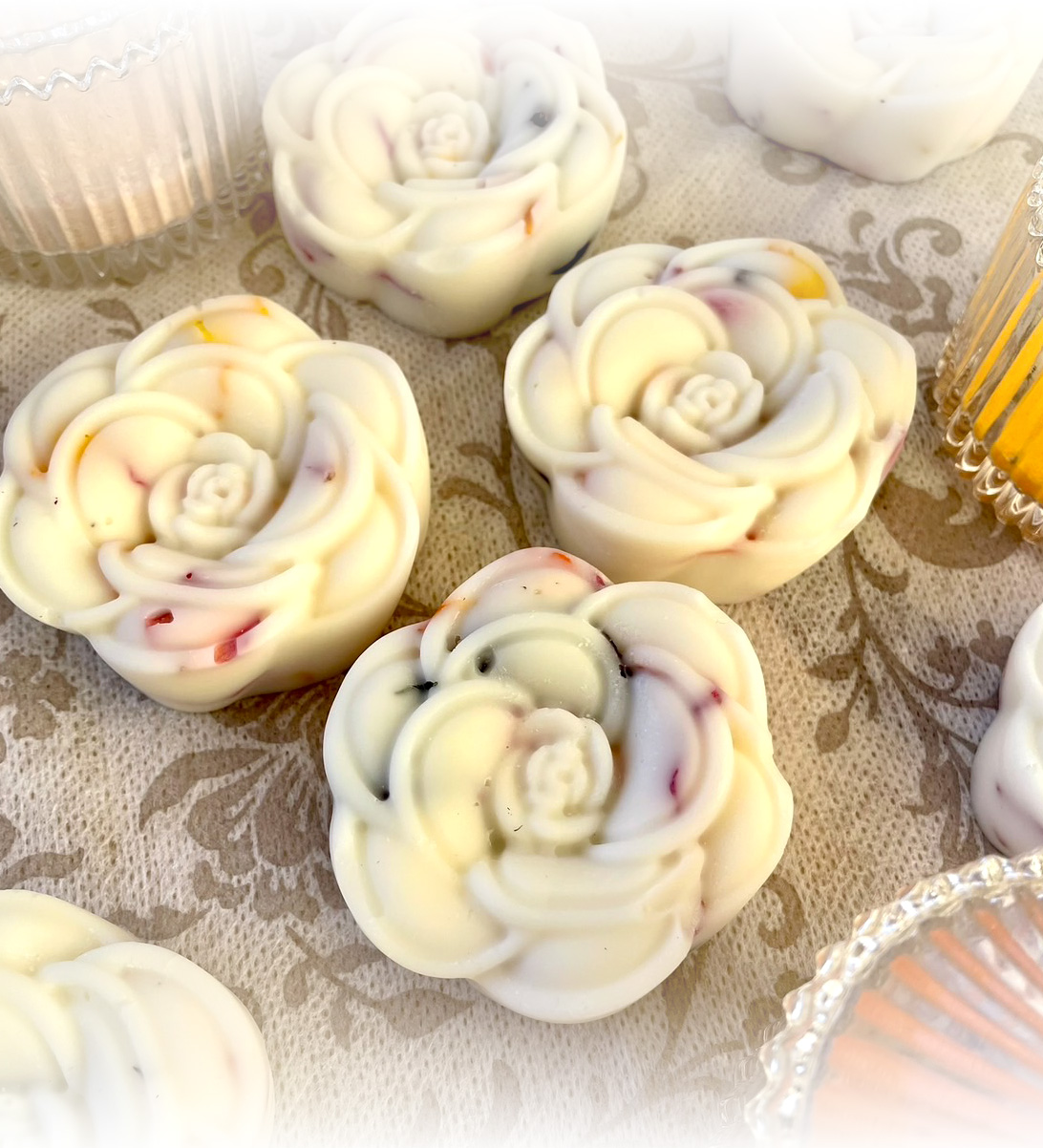 ◎香りを楽しむバラの花びら入りアロマワックス