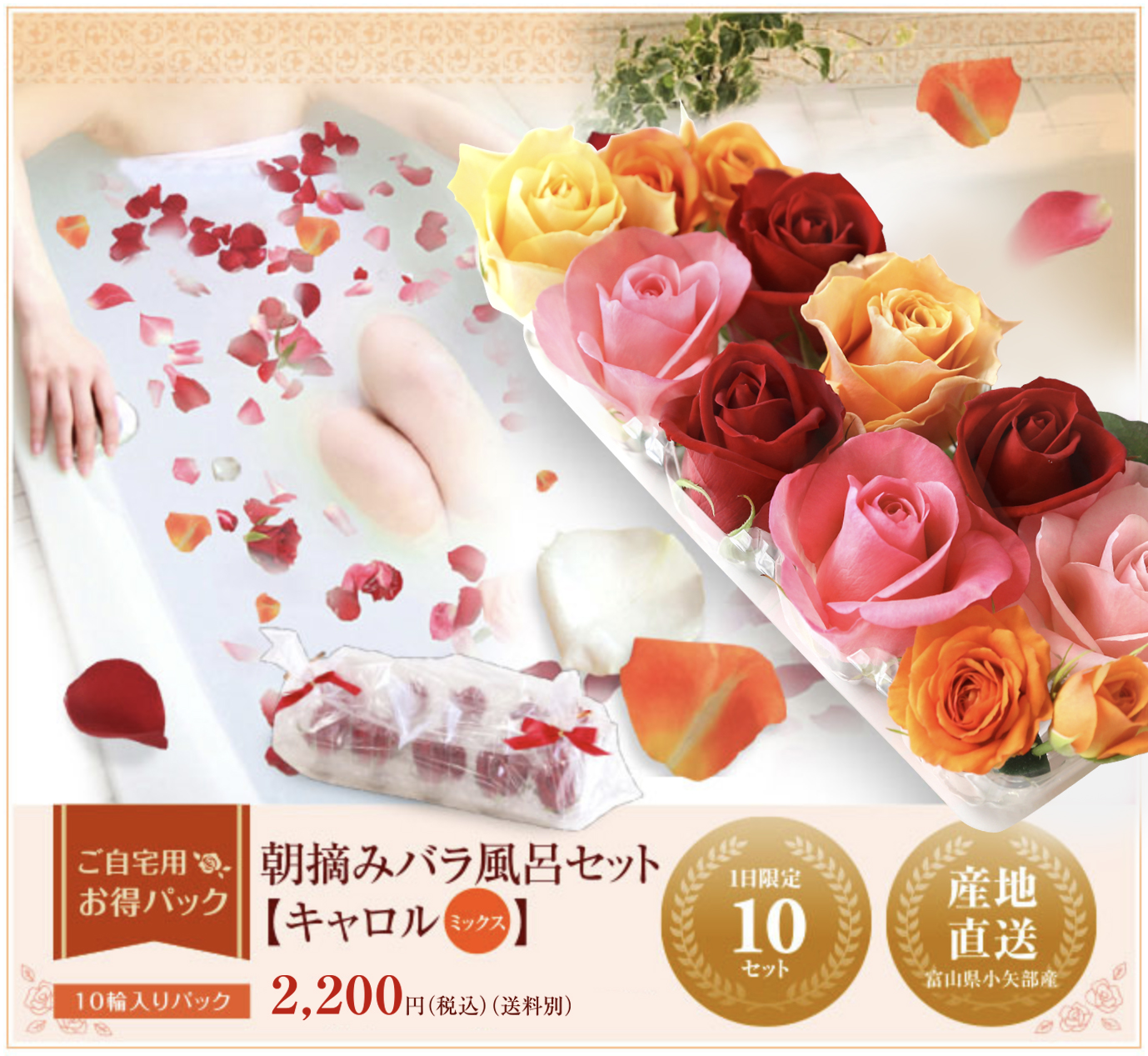 ※バラ風呂各商品は、生花のため他の商品とご一緒にお包みできません。