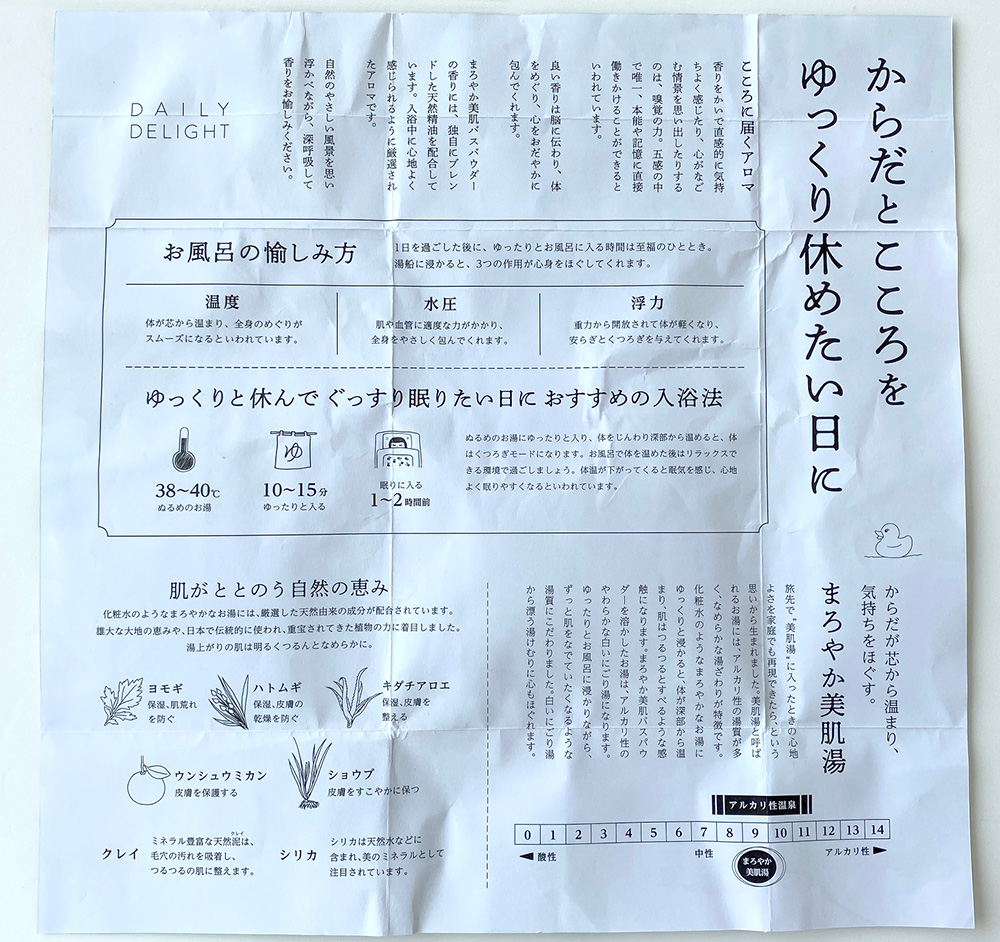 パッケージの中面には、おすすめの入浴法が優しく書いてあります♪